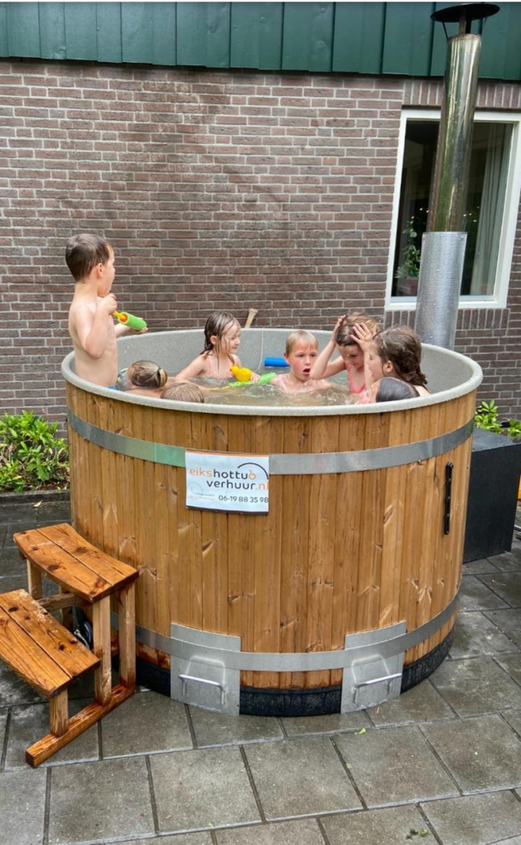 Onze ‘hottubs specifieke plaatsing’ worden verwarmd door houtverbranding. Deze hottub kan van de aanhanger afgetild worden en is bestemd voor 6 personen.